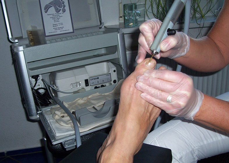 Hier sehen sie die praxisnahe Anwendung von einer Nagelbettbehandlung